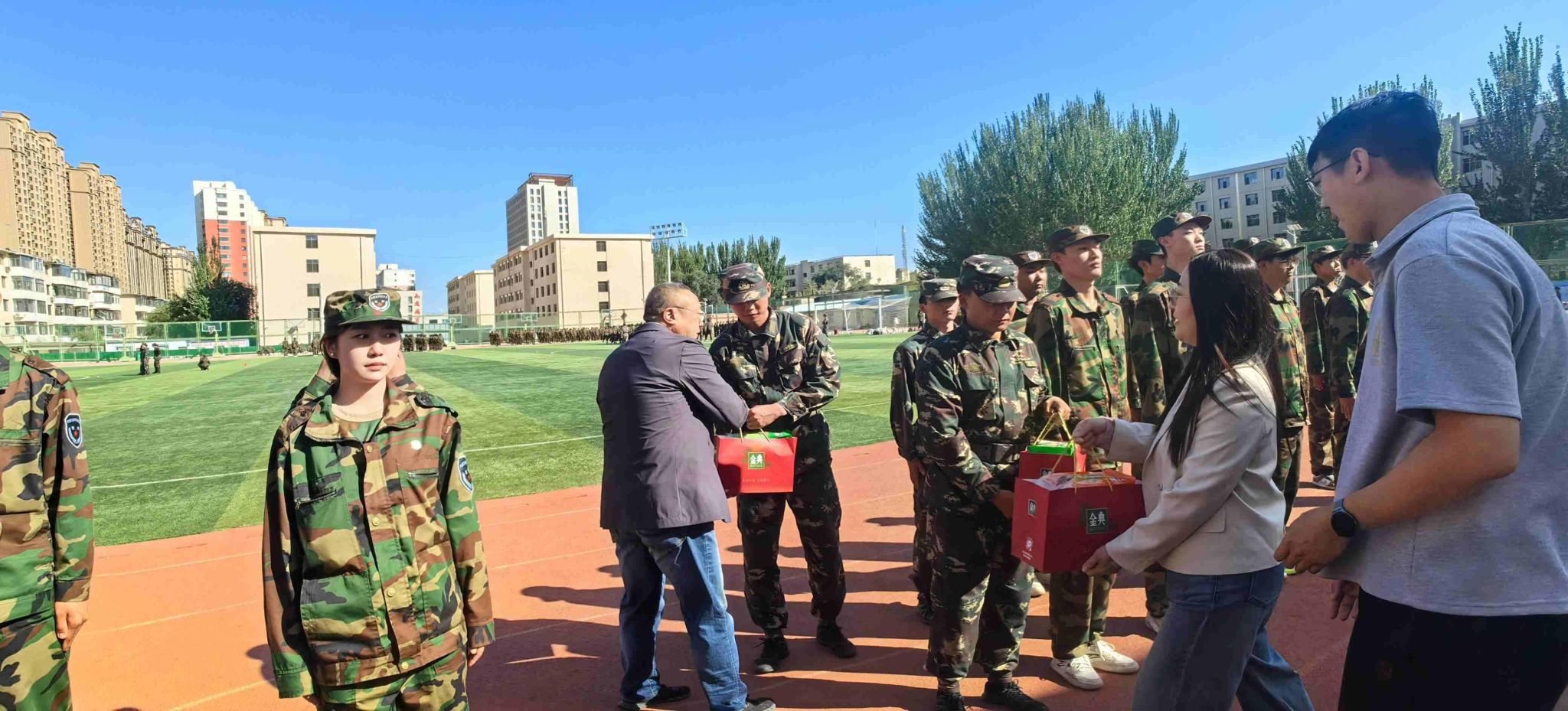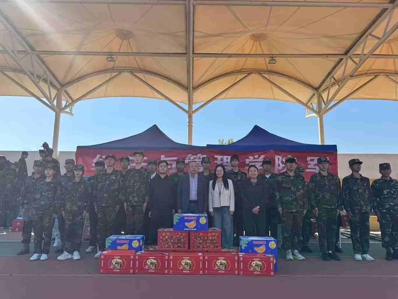 此次军训慰问活动,不仅为新生们的军训生活增添了色彩,凝聚了力量,也进一步激发了新生们积极训练的热情。愿每一位新生都能在军训中锤炼品格,在太阳成集团tyc138的沃土上,书写属于自己的青春华章!