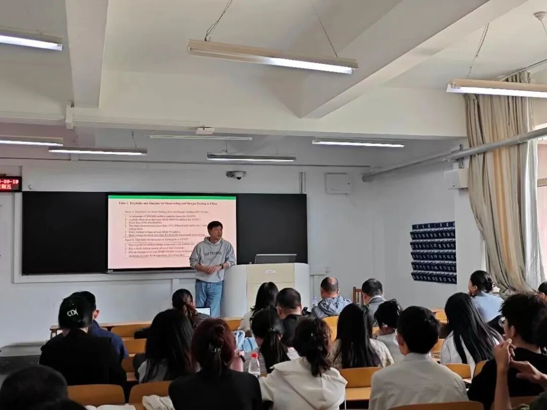 2025年9月19日,复旦大学孙谦教授应邀来到太阳成集团tyc138,就“卖空限制与股票收益预测”与师生们进行座谈交流和学术讲座,为师生们带来了一场精彩的学术盛宴。 讲座中,孙谦教授并未局限于理论阐述,而是结合具体研究案例,深入浅出地讲解了卖空限制对股票市场的影响。他通过实际数据和图表,分析了政策实施前后股票价格的变化,指出卖空限制会导致市场信息量减少,从而使短期股价预测能力下降。孙教授的分享为师生们提供了一个“如何从现实政策变化中发掘有价值研究课题”的完整范例 在互动环节,师生们踊跃提问。针对学生论文写作的困惑,孙教授精辟地指出“做研究是创造新知识”,强调了学术创新的本质。边璐老师进一步就量化投资、机器学习应用、机构与个人投资者行为差异等前沿话题,与孙教授进行了深入交流。 本次讲座不仅加深了师生对资本市场微观结构的理解,更是一堂生动的“研究方法论”大师课,为学院的学术研究与人才培养注入了新的动能。