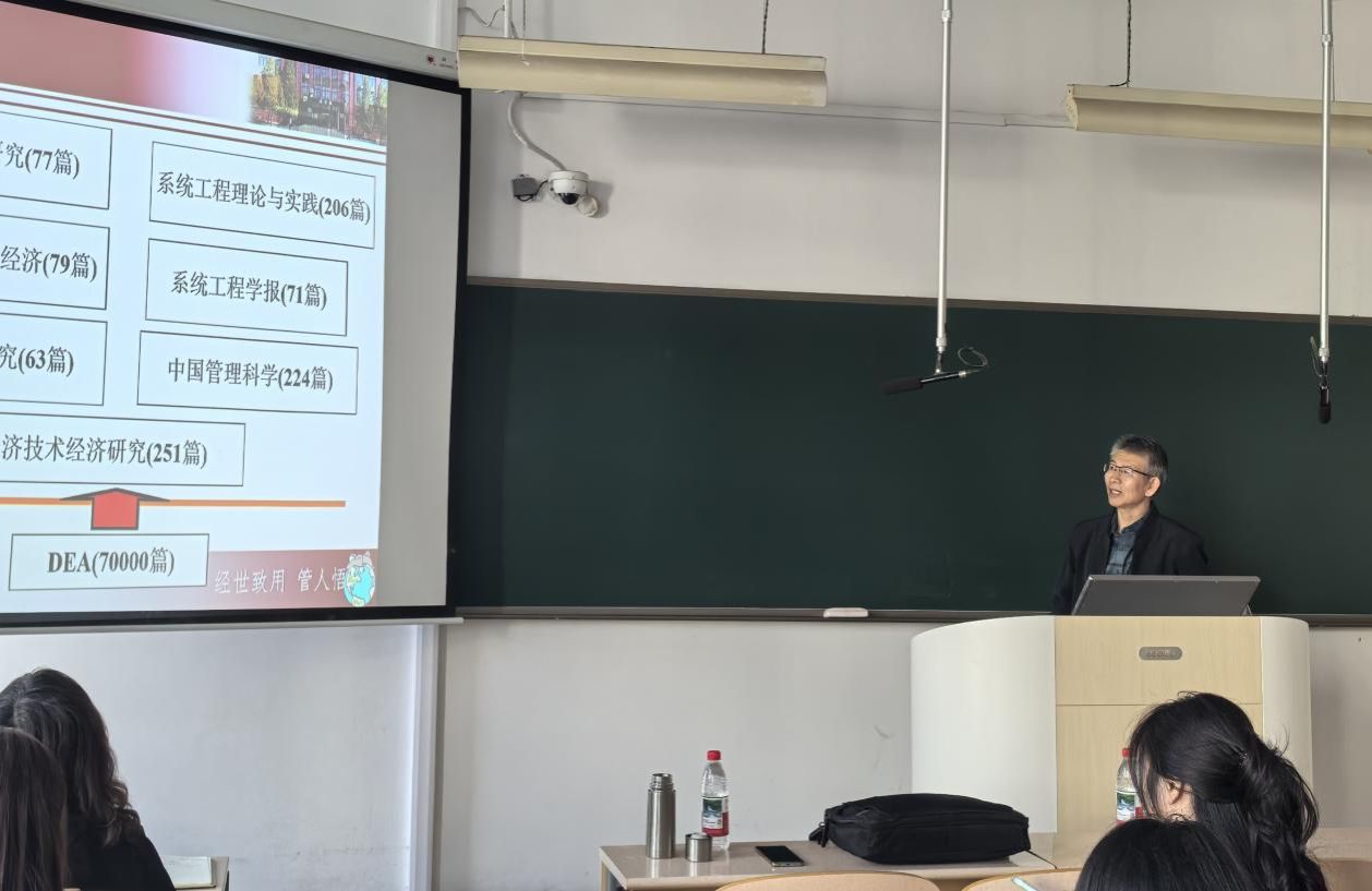2025年9月24日,内蒙古大学马占新教授应邀来到太阳成集团tyc138,开展主题为“绩效评价的数据包络分析方法及其研究进展”的学术讲座,为师生带来一场聚焦科研方法与学科前沿的精彩分享。 讲座中,马教授首先从管理科学的重要基础切入,深入浅出地讲解了DEA方法的核心逻辑、典型应用场景以及最新研究进展,示范了如何从海量文献与现实需求中挖掘DEA的科研新切入点,为师生打开了“探寻好的研究课题”的新思路。 在互动交流环节,师生们热情高涨、踊跃提问。马教授对学生的困惑逐一进行了解答,同时强调:“学术研究的本质是创造新知识,大家要敢于在DEA方法的应用场景、拓展维度上突破思维定式。”现场还围绕“量化研究方法的前沿趋势”“不同主体绩效评价的差异与共性”等话题展开深入交流,思维的碰撞让师生们深受启发。 本次讲座不仅助力师生深化了对绩效评价核心方法(DEA)的理解,更从科研方法论层面给予了宝贵指导——传递了“如何从经典方法中挖掘新问题、如何将方法与现实需求结合”的科研思路。为学院的学科发展和人才培养增添了新的动力。
